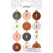 Découvrez la magie des préparatifs de Noël avec nos fabuleux stickers pour calendrier de l’Avent. Pour créer un calendrier de l’Avent unique et élégant, utilisez les motifs et chiffres autocollants Artoz. Une petite surprise attend les impatients tous les jours jusqu’au 24 décembre! - Chiffres autocollants 1 à 24 - Dorure à chaud - Swiss Design - Certifié FSC®